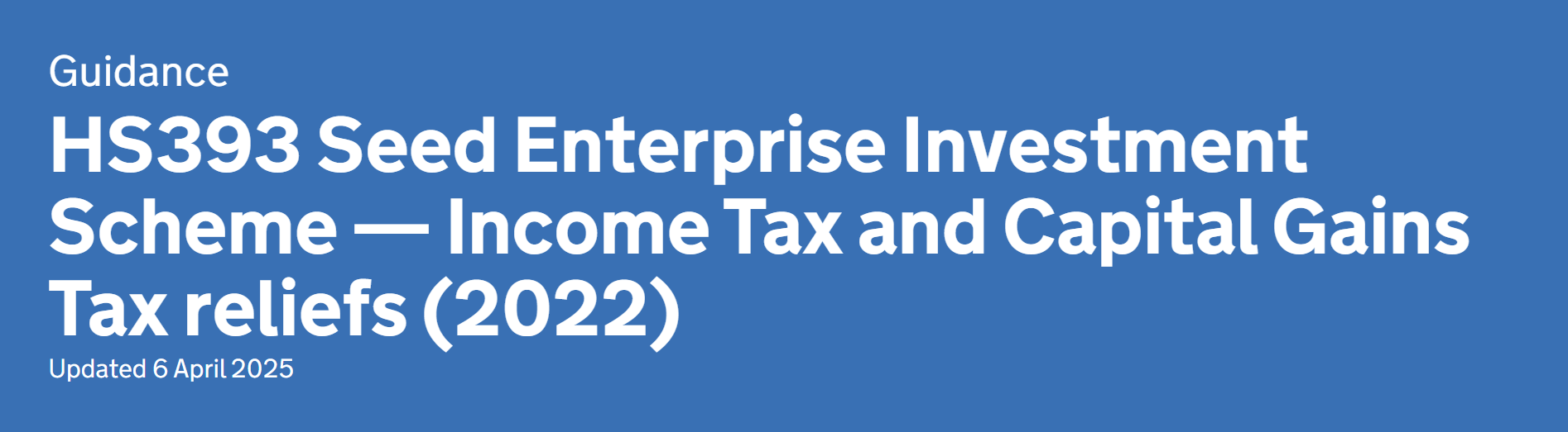 For HMRC guidance on the SEIS scheme and its implications for Income Tax and Capital Gains Tax Relief please see HMRC guidance: HS393 Seed Enterprise Investment Scheme—Income Tax and Capital Gains Tax reliefs (2022).